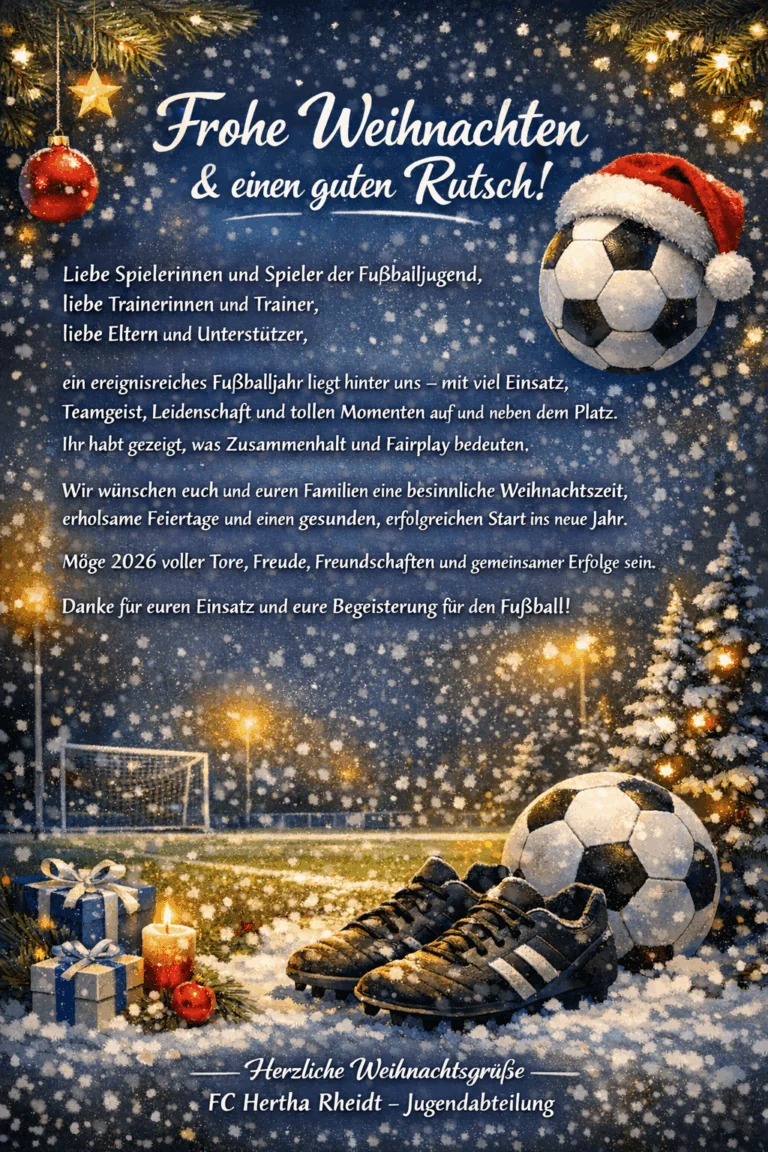 Am letzten Spieltag vor Weihnachten und dem anschließenden Jahreswechsel stehen für die Jugendmannschaften von Hertha Rheidt noch einmal zwei Termine auf dem Programm, bevor es in die wohlverdiente Winterpause geht.Den Auftakt machen am Samstag, den ...