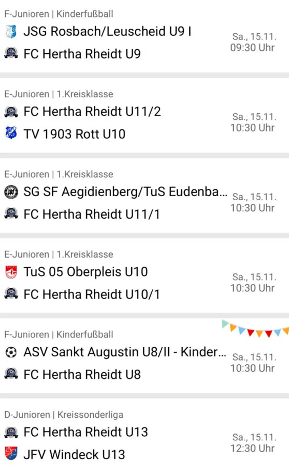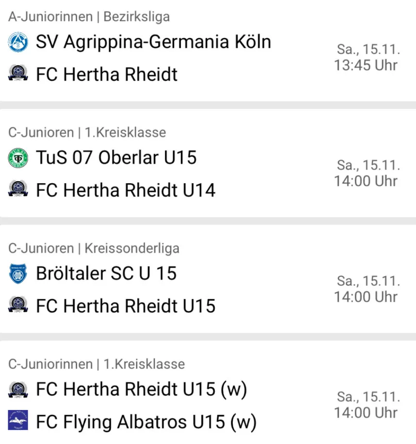 Den Auftakt in die Spielwoche machte bereits am Montag die U13, die in einem spannenden Freundschaftsspiel gegen den SC Uckerath U14 nur knapp mit 3:4 unterlag. Die Herthaner zeigten trotz des Ergebnisses eine ansprechende Leistung und hielten das Spiel bis zum Schluss offen – ein guter Test für die anstehende Begegnung in der Kreissonderliga gegen den JFV Windeck U13 am Samstag um 12:30 Uhr. Zuvor stehen am Vormittag bereits mehrere Spiele auf dem Programm: Die U9 gastiert beim Kinderfestival der JSG Rosbach/Leuscheider U9, während die U8 beim ASV Sankt Augustin ihre Spielfreude unter Beweis stellen möchte. Zeitgleich muss die U11/1 zur SG SF Aegidienberg/TuS Eudenbach und die U11/2 empfängt den TV 1903 Rott. Auch die U10/1 ist auswärts im Einsatz – beim TuS 05 Oberpleis U10 wollen die jungen Herthaner ihren positiven Trend fortsetzen. Am Nachmittag geht es dann mit den älteren Jahrgängen weiter: Die U14 reist in der 1. Kreisklasse zum TuS 07 Oberlar U15, während die U15 in der Kreissonderliga beim Bröltaler SC U15 antritt. Beide Teams hoffen auf Wiedergutmachung nach einem schwierigen Wochenende. Die C-Juniorinnen (U15w) empfangen zeitgleich die FC Flying Albatros U15 (w) und möchten nach ihrem 10:0-Kantersieg vom vergangenen Spieltag erneut überzeugen. Die A-Juniorinnen sind in der Bezirksliga dran und reisen zum SV Agrippina-Germania Köln.