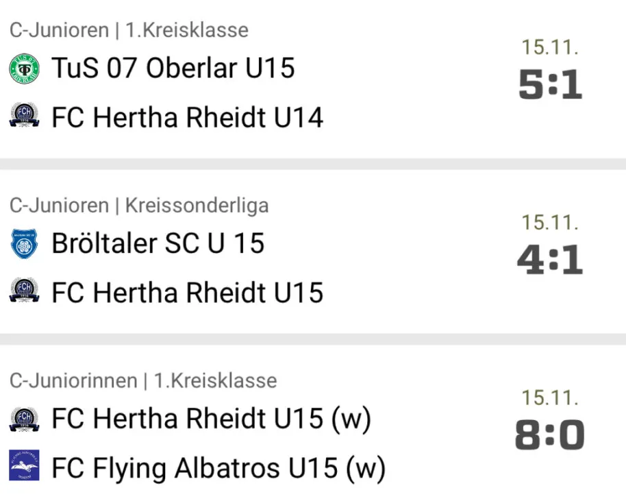 Am 15. November waren zahlreiche Jugendteams des FC Hertha Rheidt im Einsatz.