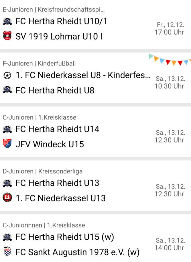 Am Samstag, 13.12., um 10:30 Uhr geht es für die F-Junioren U8 im Rahmen des Kinderfußballs zum 1. FC Niederkassel, wo ein buntes Kinderfestival auf sie wartet.