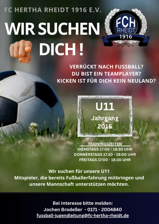 Die U11/1 des FC Hertha Rheidt ist auf einem sehr guten Weg – und offen für weitere Unterstützung: Fußballbegeisterte Kinder mit Vorerfahrung sind herzlich eingeladen, Teil dieser engagierten Mannschaft zu werden.