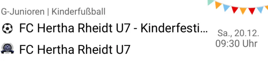 Den Auftakt machen am Samstag, den 20.12., die G-Junioren. Die U7 von Hertha Rheidt nimmt ab 9:30 Uhr am Kinderfußball-Spieltag teil.
