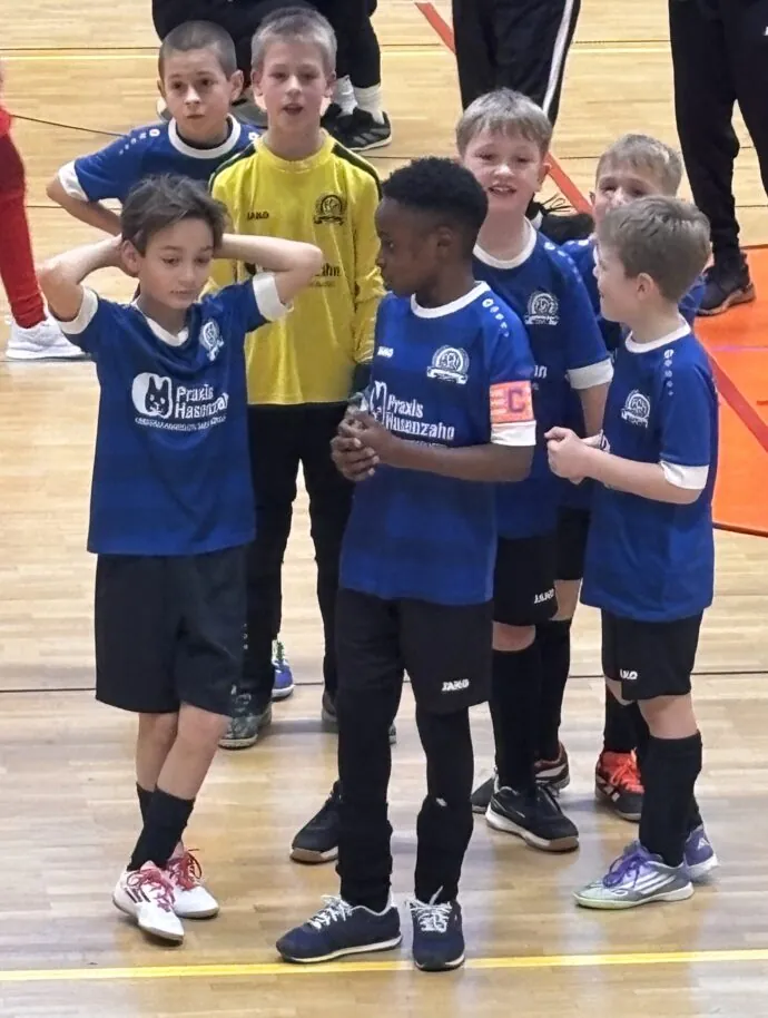 Am Sonntag war die U11/2 beim E-Jugend-Hallenturnier des FC Flying Albatros in der Rundsporthalle am Elsenplatz in Troisdorf im Einsatz. In einer ausgeglichenen Gruppenphase schloss das Team punktgleich mit dem Tabellenzweiten ab, verpasste jedoch aufgrund des schlechteren Torverhältnisses den Einzug in das Spiel um die vorderen Plätze. Im Nachbarschaftsduell der Gruppenphase gelang dennoch ein knapper und umkämpfter Sieg. Im anschließenden Platzierungsspiel um Platz 5. unterlag die Mannschaft der U11 des SV Lohmar nach Siebenmeterschießen. Am Ende stand ein guter sechster Platz, der die engagierte Leistung des Teams über das gesamte Turnier hinweg widerspiegelt.