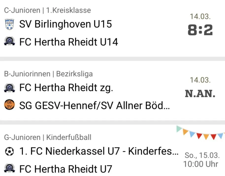Ebenfalls um 10.30 Uhr beginnt im Sportpark Süd das Spielefest der U8, während die U10/1 bei der U10/2 des FV Bad Honnef zu Gast ist.