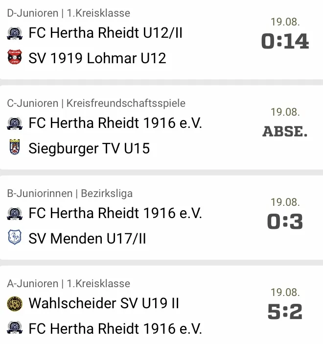 Leider wurden kurzfristig noch die Begegnungen der D-Juniorinnen, D-Junioren und C-Junioren abgesagt.